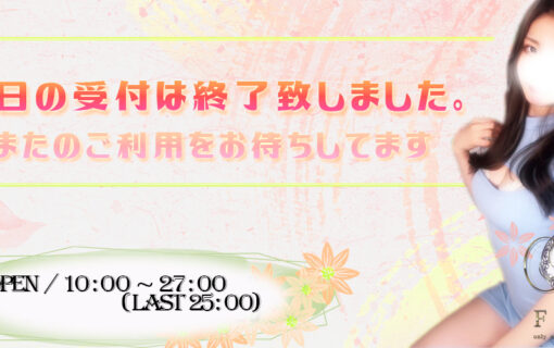最新のご案内時間はお電話にてお問い合わせ下さい。【営業時間 10:00~26:00 (最終受付 24:00)】